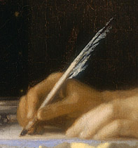 Picture: “A Lady Writing” (Close-up) by Johannes Vermeer (1665-66); http://www.essentialvermeer.com/catalogue/lady_writing.html#.VULKsJO8jGs